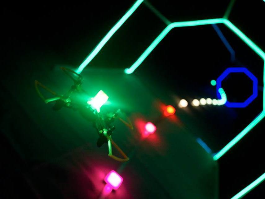 Avec nos drones volants, les enjeux sont quelque peu différents. Il s’agit de franchir des cerceaux lumineux et d’atterrir sur de petites zones prévues à cet effet. Le pilotage un peu plus ardu dans ces conditions donnera quelque peu du fil à retordre à vos apprentis dronistes. Ne vous inquiétez pas, nos animateurs sauront les guider afin d’apprécier ce moment riche en apprentissages. Ils vous apprendront même à réaliser des loopings !